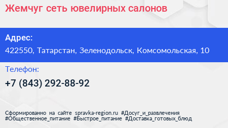 Жемчуг, сеть ювелирных салонов по адресу 422550, Татарстан, Зеленодольск, Комсомольская, 10 в дальнейшем Организация, размещена в следующих категориях: