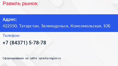 Равиль, рынок по адресу 422550, Татарстан, Зеленодольск, Комсомольская, 10Б в дальнейшем Организация, размещена в следующих категориях: