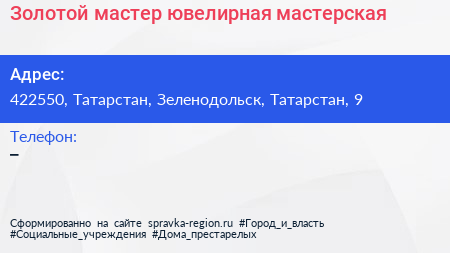 Золотой мастер, ювелирная мастерская по адресу 422550, Татарстан, Зеленодольск, Татарстан, 9 в дальнейшем Организация, размещена в следующих категориях: