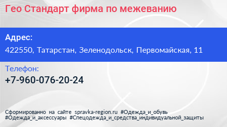 Гео-Стандарт, фирма по межеванию по адресу 422550, Татарстан, Зеленодольск, Первомайская, 11 в дальнейшем Организация, размещена в следующих категориях: