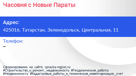 Часовня, с. Новые Параты по адресу 425016, Татарстан, Зеленодольск, Центральная, 11 в дальнейшем Организация, размещена в следующих категориях: