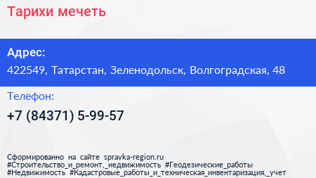 Тарихи, мечеть по адресу 422549, Татарстан, Зеленодольск, Волгоградская, 48 в дальнейшем Организация, размещена в следующих категориях: