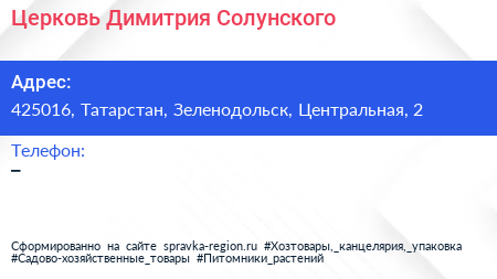 Церковь Димитрия Солунского по адресу 425016, Татарстан, Зеленодольск, Центральная, 2 в дальнейшем Организация, размещена в следующих категориях: