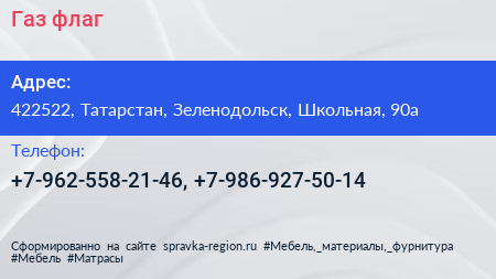 Газ флаг по адресу 422522, Татарстан, Зеленодольск, Школьная, 90а в дальнейшем Организация, размещена в следующих категориях: