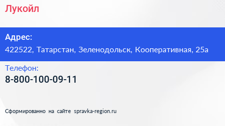 Лукойл по адресу 422522, Татарстан, Зеленодольск, Кооперативная, 25а в дальнейшем Организация, размещена в следующих категориях: