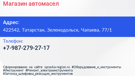 Магазин автомасел по адресу 422542, Татарстан, Зеленодольск, Чапаева, 77/1 в дальнейшем Организация, размещена в следующих категориях: