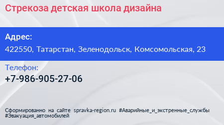 Стрекоза, детская школа дизайна по адресу 422550, Татарстан, Зеленодольск, Комсомольская, 23 в дальнейшем Организация, размещена в следующих категориях: