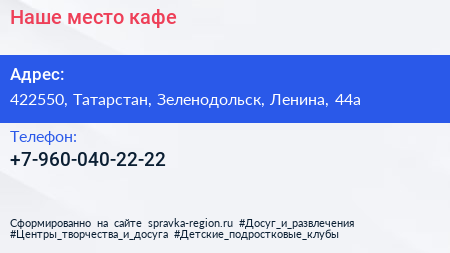 Наше место, кафе по адресу 422550, Татарстан, Зеленодольск, Ленина, 44а в дальнейшем Организация, размещена в следующих категориях: