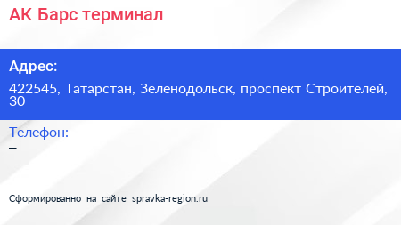АК Барс, терминал по адресу 422545, Татарстан, Зеленодольск, проспект Строителей, 30 в дальнейшем Организация, размещена в следующих категориях: