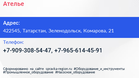 Ателье по адресу 422545, Татарстан, Зеленодольск, Комарова, 21 в дальнейшем Организация, размещена в следующих категориях: