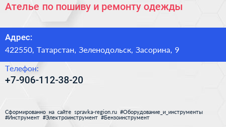 Ателье по пошиву и ремонту одежды по адресу 422550, Татарстан, Зеленодольск, Засорина, 9 в дальнейшем Организация, размещена в следующих категориях: