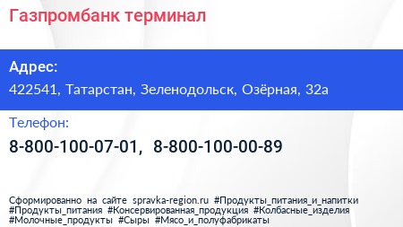 Газпромбанк, терминал по адресу 422541, Татарстан, Зеленодольск, Озёрная, 32а в дальнейшем Организация, размещена в следующих категориях: