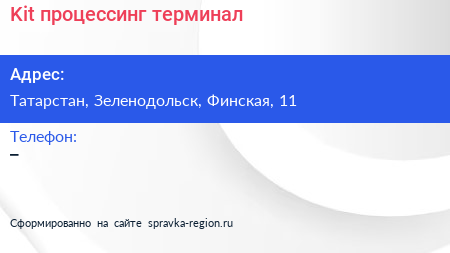 Kit процессинг, терминал по адресу Татарстан, Зеленодольск, Финская, 11 в дальнейшем Организация, размещена в следующих категориях: