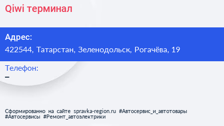Qiwi, терминал по адресу 422544, Татарстан, Зеленодольск, Рогачёва, 19 в дальнейшем Организация, размещена в следующих категориях:
