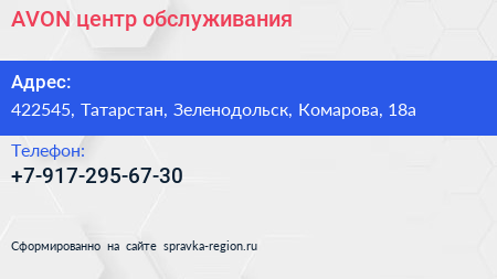 AVON, центр обслуживания по адресу 422545, Татарстан, Зеленодольск, Комарова, 18а в дальнейшем Организация, размещена в следующих категориях: