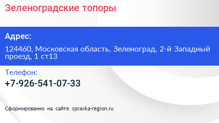 Зеленоградские топоры по адресу 124460, Московская область, Зеленоград, 2-й Западный проезд, 1 ст13 в дальнейшем Организация, размещена в следующих категориях: