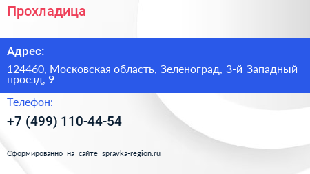 Прохладица по адресу 124460, Московская область, Зеленоград, 3-й Западный проезд, 9 в дальнейшем Организация, размещена в следующих категориях: