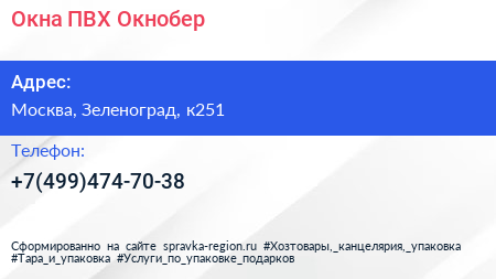 Окна ПВХ Окнобер по адресу Москва, Зеленоград, к251 в дальнейшем Организация, размещена в следующих категориях: