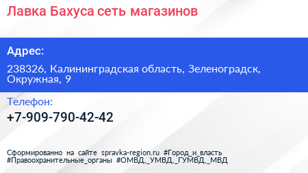 Лавка Бахуса, сеть магазинов по адресу 238326, Калининградская область, Зеленоградск, Окружная, 9 в дальнейшем Организация, размещена в следующих категориях: