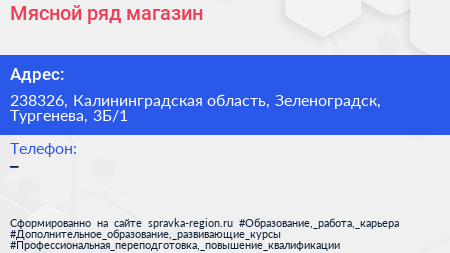 Мясной ряд, магазин по адресу 238326, Калининградская область, Зеленоградск, Тургенева, 3Б/1 в дальнейшем Организация, размещена в следующих категориях: