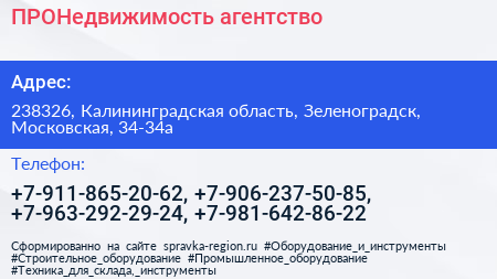ПРОНедвижимость, агентство по адресу 238326, Калининградская область, Зеленоградск, Московская, 34-34а в дальнейшем Организация, размещена в следующих категориях: