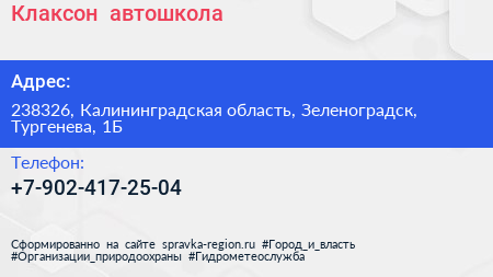 Клаксон+, автошкола по адресу 238326, Калининградская область, Зеленоградск, Тургенева, 1Б в дальнейшем Организация, размещена в следующих категориях: