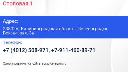 Столовая №1 по адресу 238326, Калининградская область, Зеленоградск, Вокзальная, 3а в дальнейшем Организация, размещена в следующих категориях: