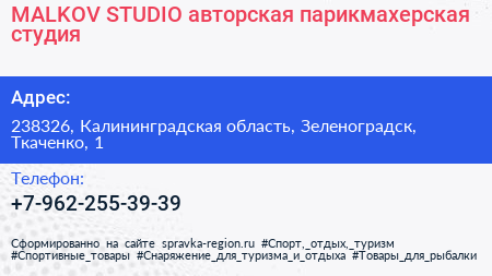 MALKOV STUDIO, авторская парикмахерская студия по адресу 238326, Калининградская область, Зеленоградск, Ткаченко, 1 в дальнейшем Организация, размещена в следующих категориях: