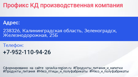 Профикс КД, производственная компания по адресу 238326, Калининградская область, Зеленоградск, Железнодорожная, 25Б в дальнейшем Организация, размещена в следующих категориях: