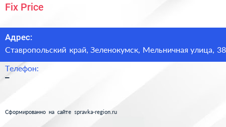 Fix Price по адресу Ставропольский край, Зеленокумск, Мельничная улица, 38 в дальнейшем Организация, размещена в следующих категориях: