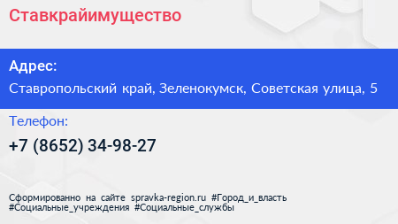 Ставкрайимущество по адресу Ставропольский край, Зеленокумск, Советская улица, 5 в дальнейшем Организация, размещена в следующих категориях: