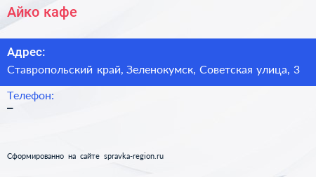 Айко, кафе по адресу Ставропольский край, Зеленокумск, Советская улица, 3 в дальнейшем Организация, размещена в следующих категориях: