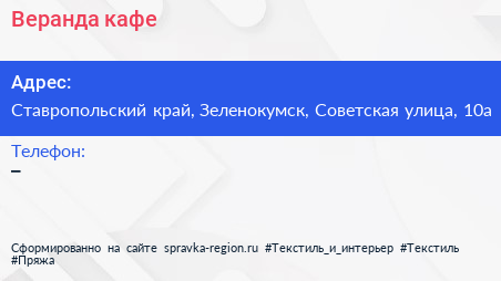 Веранда, кафе по адресу Ставропольский край, Зеленокумск, Советская улица, 10а в дальнейшем Организация, размещена в следующих категориях: