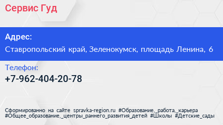 Сервис-Гуд по адресу Ставропольский край, Зеленокумск, площадь Ленина, 6 в дальнейшем Организация, размещена в следующих категориях: