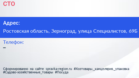 СТО по адресу Ростовская область, Зерноград, улица Специалистов, 69Б в дальнейшем Организация, размещена в следующих категориях: