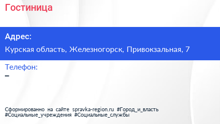 Гостиница по адресу Курская область, Железногорск, Привокзальная, 7 в дальнейшем Организация, размещена в следующих категориях: