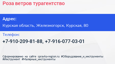 Роза ветров, турагентство по адресу Курская область, Железногорск, Курская, 80 в дальнейшем Организация, размещена в следующих категориях:
