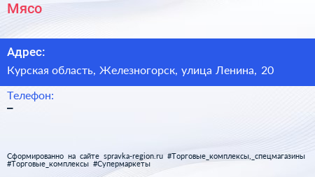 Мясо по адресу Курская область, Железногорск, улица Ленина, 20 в дальнейшем Организация, размещена в следующих категориях: