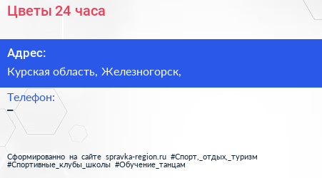Цветы 24 часа по адресу Курская область, Железногорск, в дальнейшем Организация, размещена в следующих категориях: