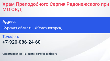 Храм Преподобного Сергия Радонежского при МО ОВД по адресу Курская область, Железногорск, в дальнейшем Организация, размещена в следующих категориях: