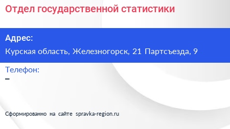 Отдел государственной статистики по адресу Курская область, Железногорск, 21 Партсъезда, 9 в дальнейшем Организация, размещена в следующих категориях: