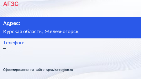АГЗС по адресу Курская область, Железногорск, в дальнейшем Организация, размещена в следующих категориях: