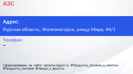 АЗС по адресу Курская область, Железногорск, улица Мира, 44/1 в дальнейшем Организация, размещена в следующих категориях: