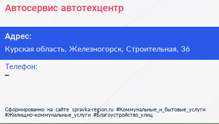 Автосервис, автотехцентр по адресу Курская область, Железногорск, Строительная, 36 в дальнейшем Организация, размещена в следующих категориях: