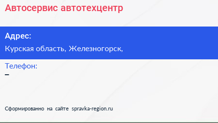 Автосервис, автотехцентр по адресу Курская область, Железногорск, в дальнейшем Организация, размещена в следующих категориях: