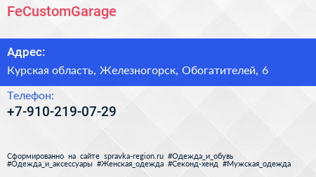 FeCustomGarage по адресу Курская область, Железногорск, Обогатителей, 6 в дальнейшем Организация, размещена в следующих категориях: