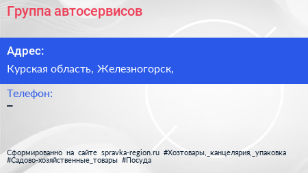 Группа автосервисов по адресу Курская область, Железногорск, в дальнейшем Организация, размещена в следующих категориях: