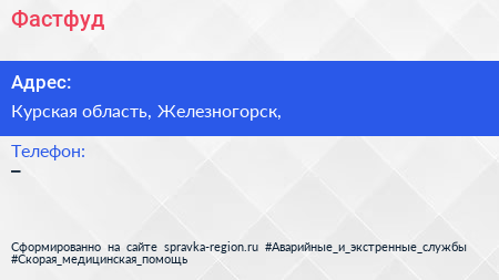 Фастфуд по адресу Курская область, Железногорск, в дальнейшем Организация, размещена в следующих категориях: