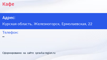 Кафе по адресу Курская область, Железногорск, Ермолаевская, 22 в дальнейшем Организация, размещена в следующих категориях:
