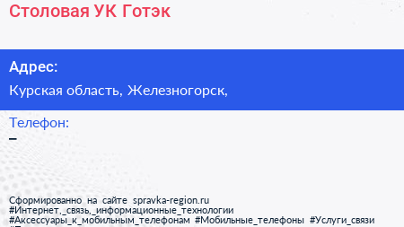 Столовая УК Готэк по адресу Курская область, Железногорск, в дальнейшем Организация, размещена в следующих категориях: